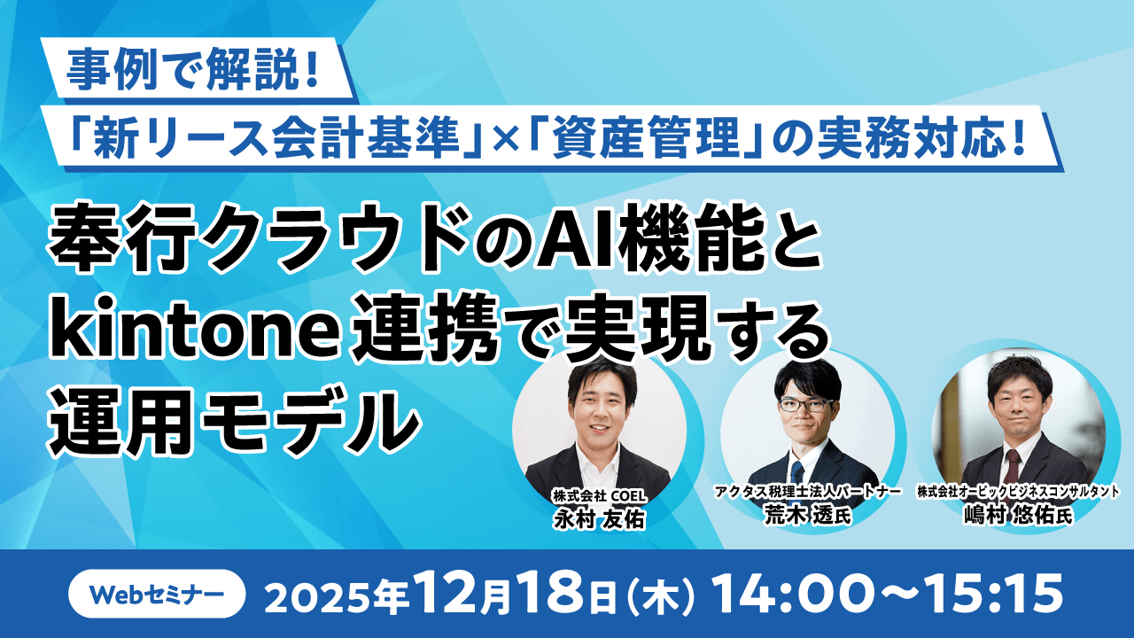 資産管理全般の業務効率を向上する「kintone × 奉行クラウド」の運用モデルを公開! 稟議決裁~契約締結~資産台帳登録~会計処理へとシームレスなデータ連携で「業務がつながる」具体例をご紹介します。煩雑な手作業を削減し、貴社の業務DX化を加速させるヒントが満載です!